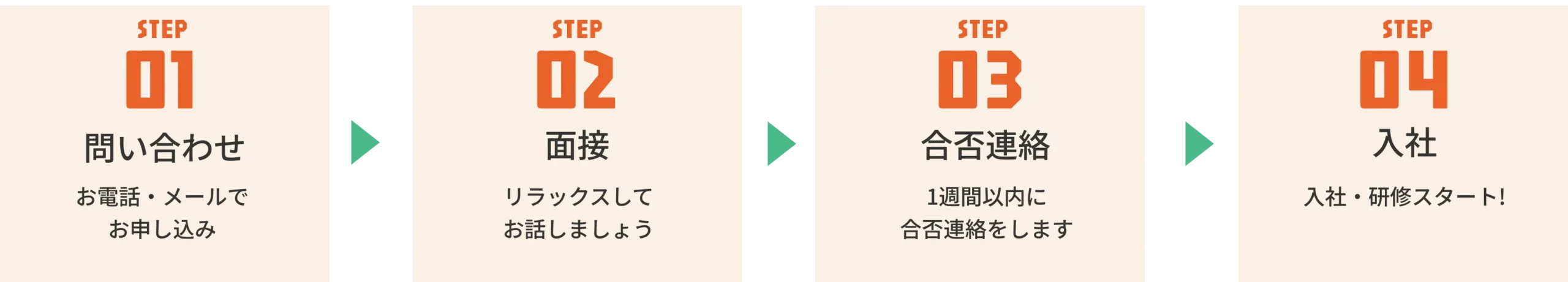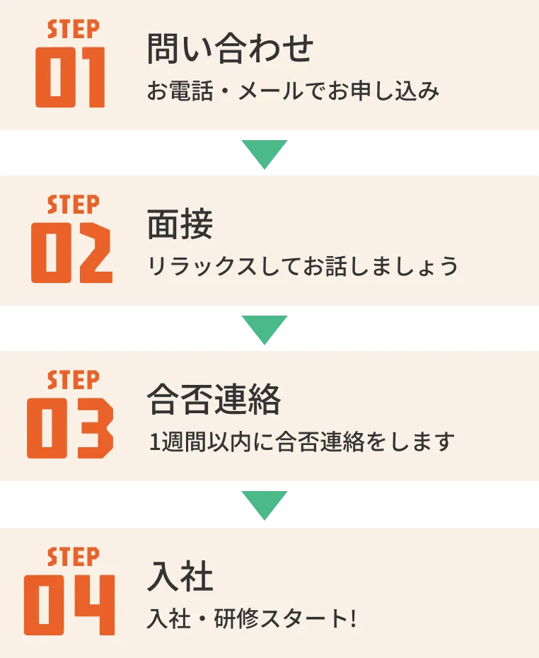先輩スタッフがひとつひとつ丁寧に教えるので、未経験の方も着実に成長できます。