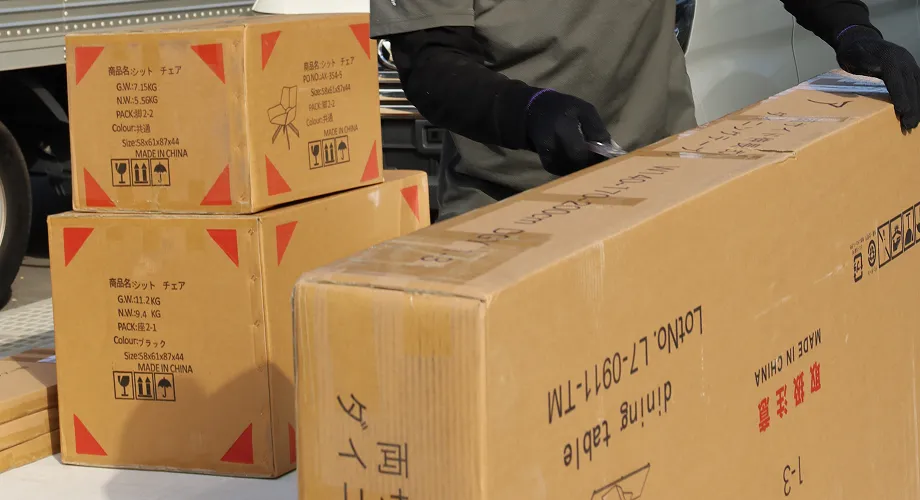 お客様宅の外で商品の箱を開けたり、ドライバーが家の中で組み立てしている間に開梱した段ボールや袋を片付けたりします。