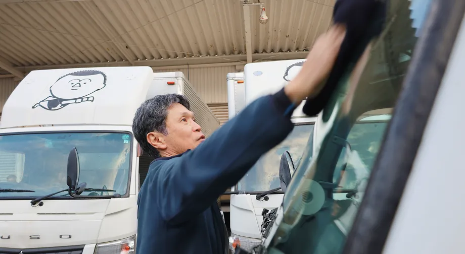 トラックの清掃や道具の整理をして、今日一日の振り返り。「お疲れ様でした!」笑顔で一日を終えます。最初は覚えることがたくさんで大変に感じるかもしれませんが、先輩たちが全力でサポートしてくれるので安心です。