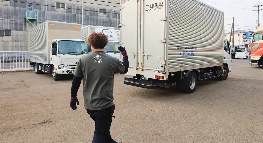最初はスリーマン(ドライバー+助手+あなた)で研修スタート。助手の先輩の仕事を見て、どんなことをするか学びます。
